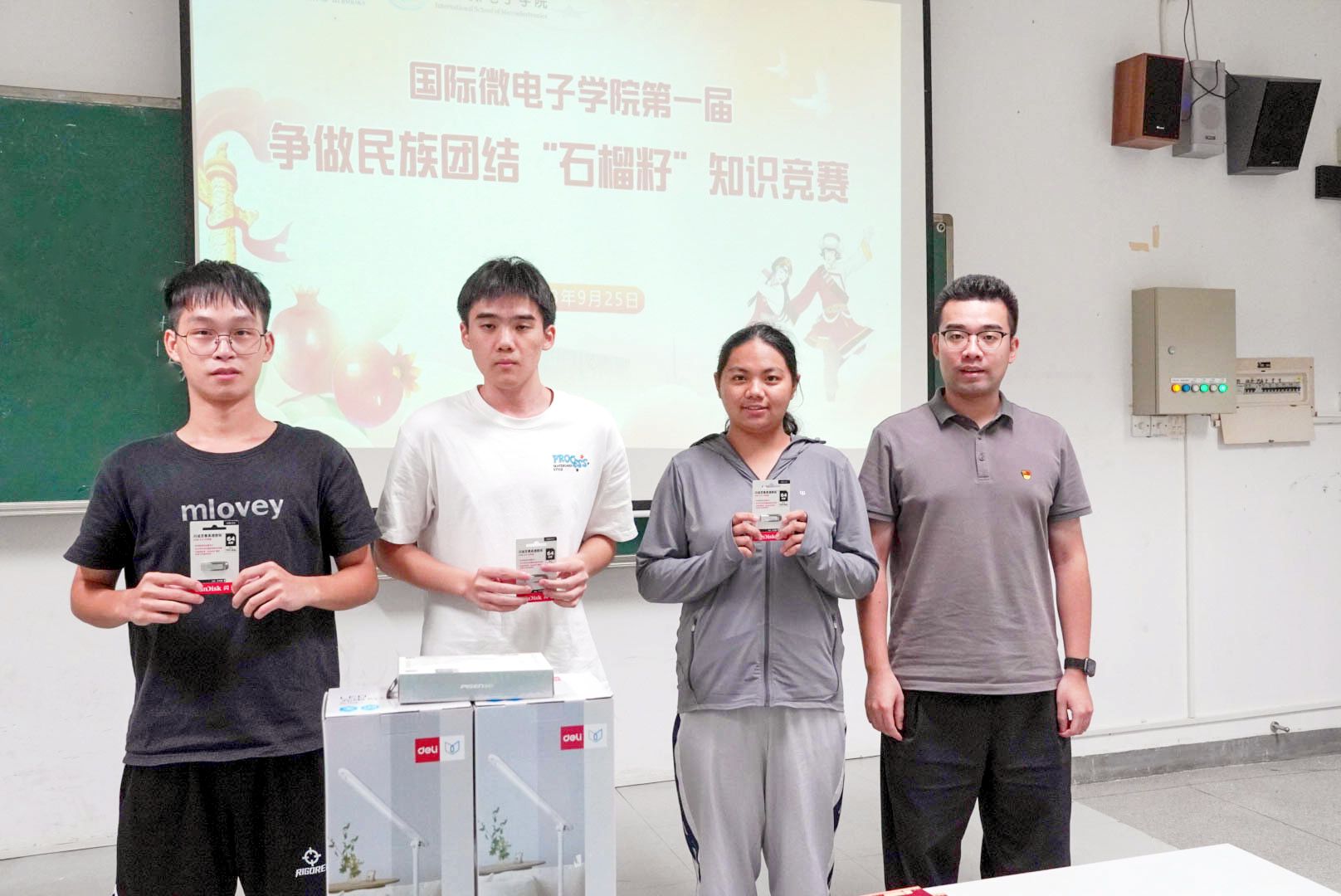 为深入学习贯彻习近平新时代中国特色社会主义思想,全面加强铸牢中华民族共同体意识宣传教育,在全院营造民族团结的良好氛围, 9月25日晚,太阳城集团第一届争做民族团结“石榴籽”知识竞赛在6E-202教室举行,来自公司不同民族的56名同学参加了本次比赛。