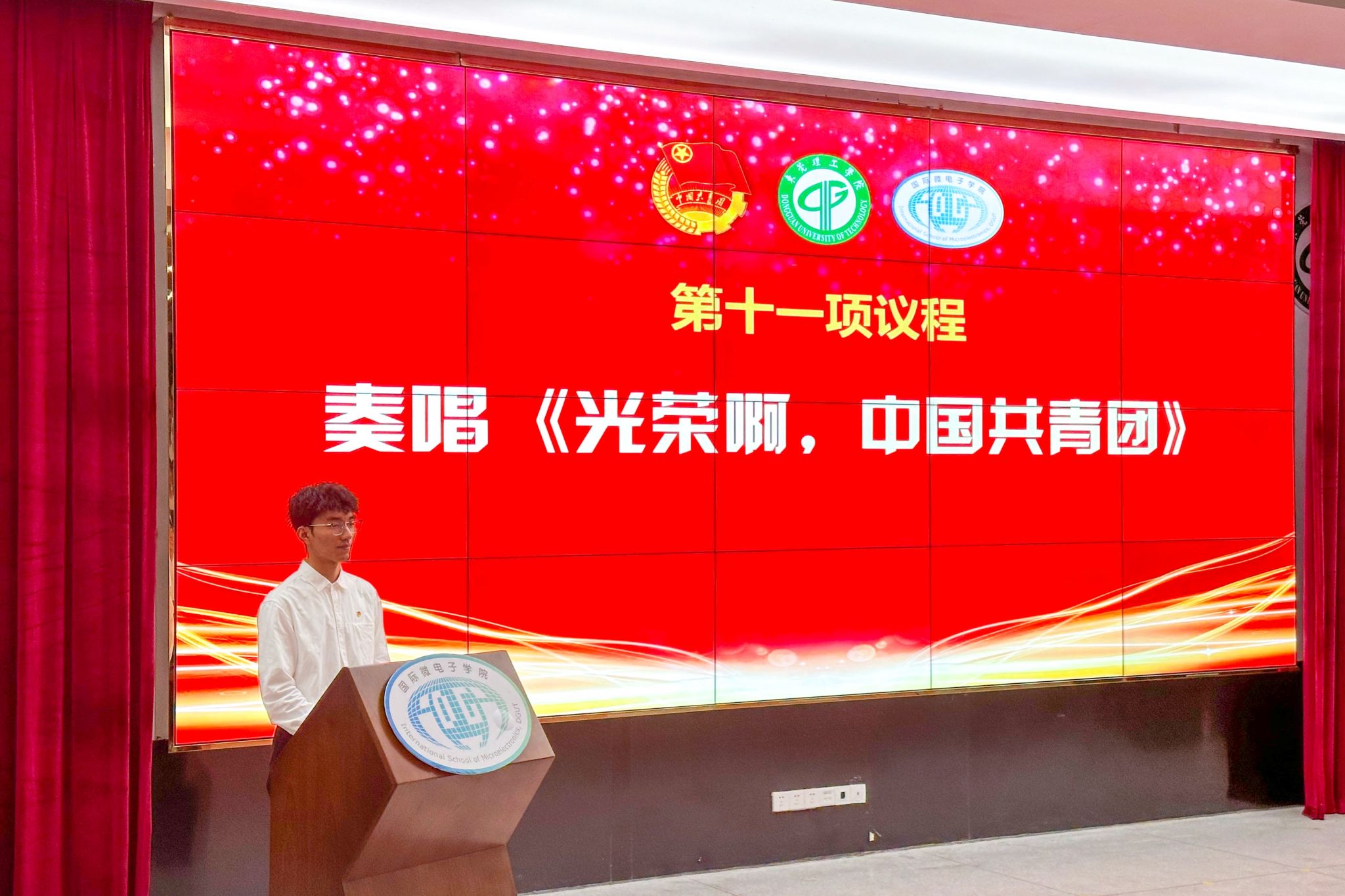 大会在庄严的国歌声中拉开序幕。